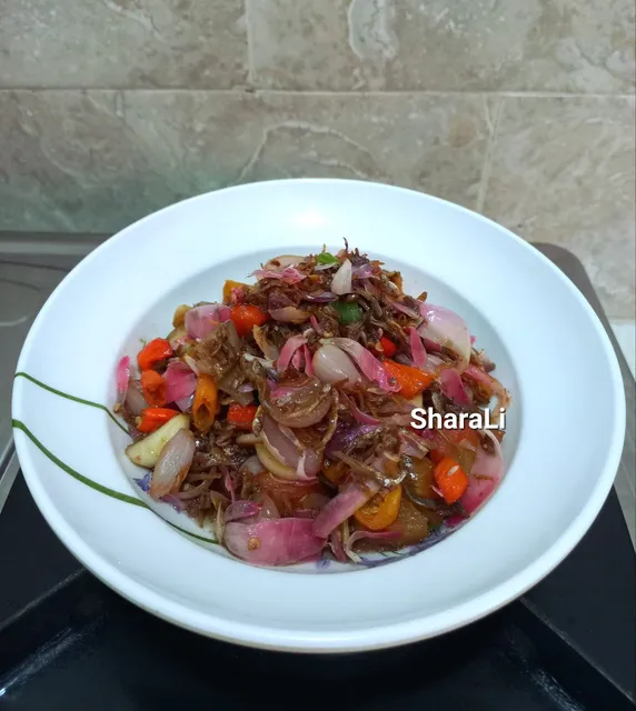 1.Tumis bawang merah sampai sedikit layu, lalu masukan bawang putih. Sampai layu saja. Aduk dan masukan daun bawang, cabe, tomat dan terasi. Aduk lalu masukan gula, micin dan sejumput garam (jika dirasa ikan terinya asin,tdk tambah garam gapapa).